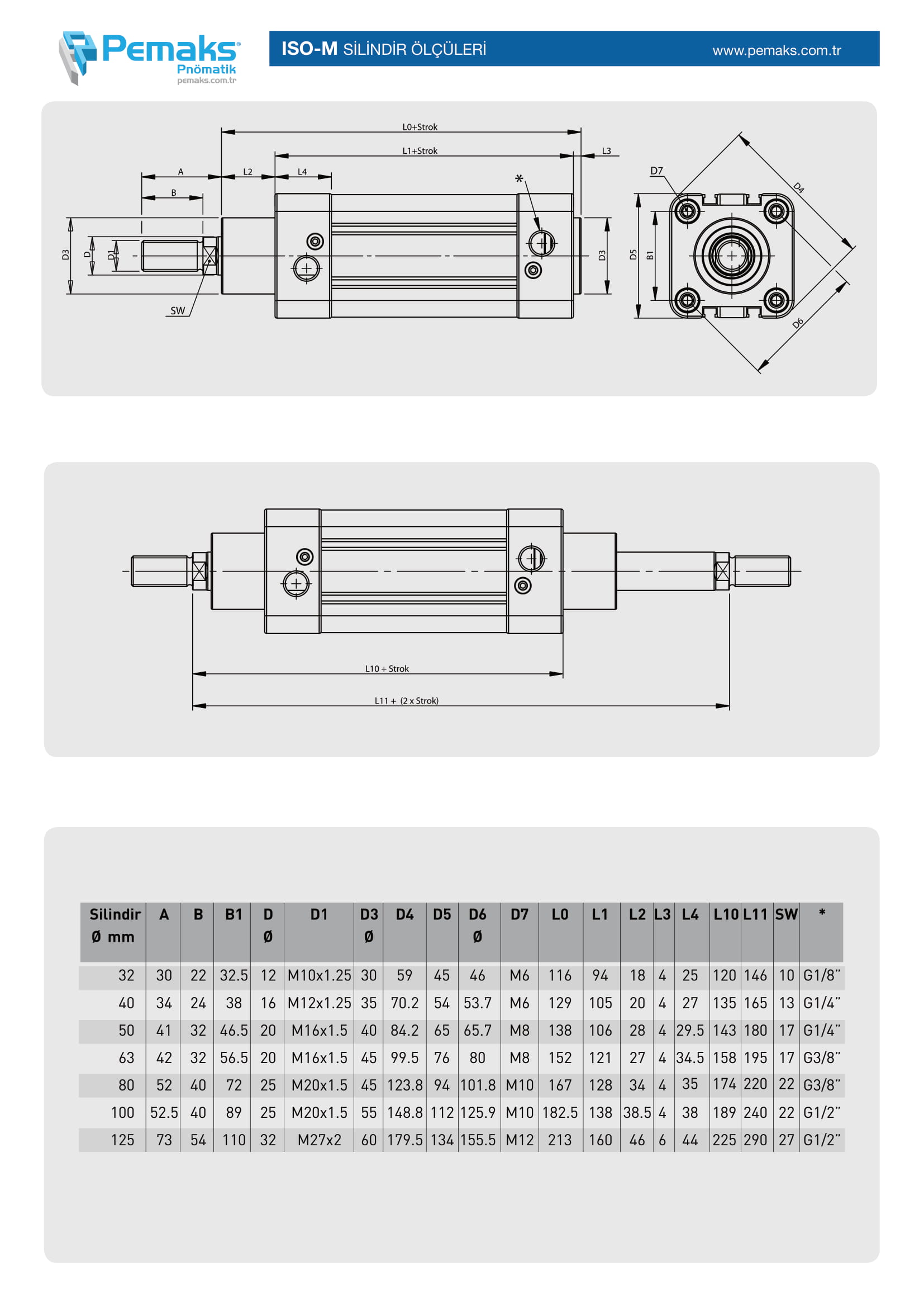 ISO-M Ø32 / Ø125 Pnömatik Silindirler ISO-M Ø32 / Ø125 Pnömatik Silindirler